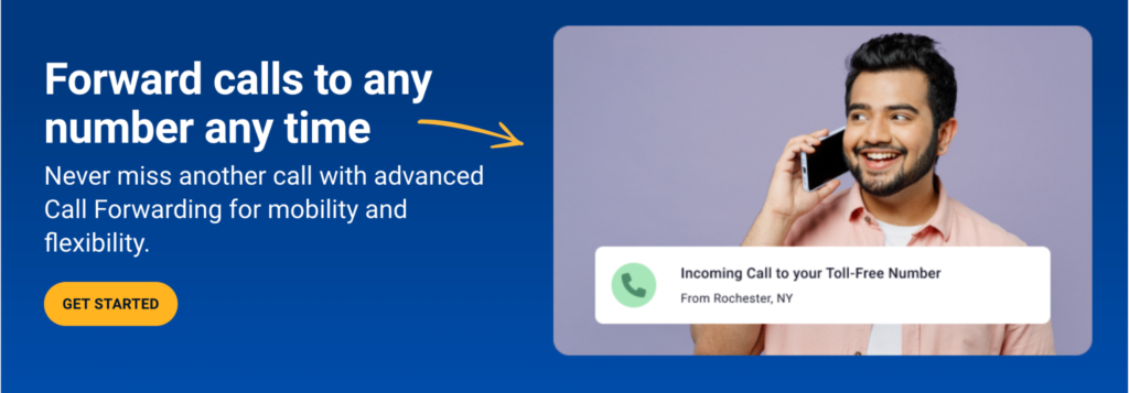 Call forwarding is a functionality that lets 800.com send incoming calls to a different phone number you choose, like your cell phone or office line. This ensures you don’t miss important customer interactions, no matter where you are.