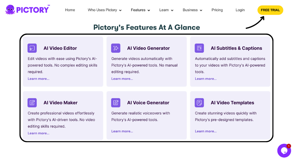 Pictory AI isn’t just one simple tool – it’s a toolbox filled with different ways to make awesome videos.
