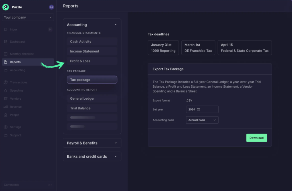 Experts (like accountants or the Puzzle IO support team) are usually available to guide you.