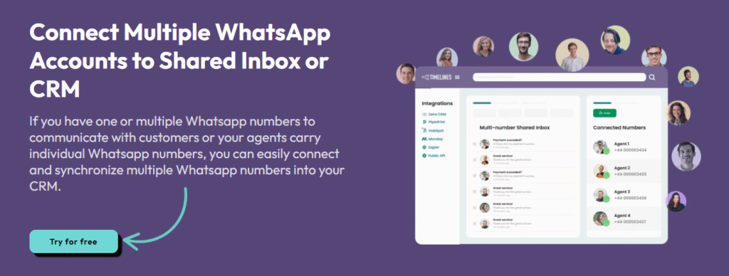 Timelines is a tool for businesses that use WhatsApp. It gathers all your team’s WhatsApp chats into one shared inbox on your computer. This helps you keep track of conversations, work together better, and find information faster.